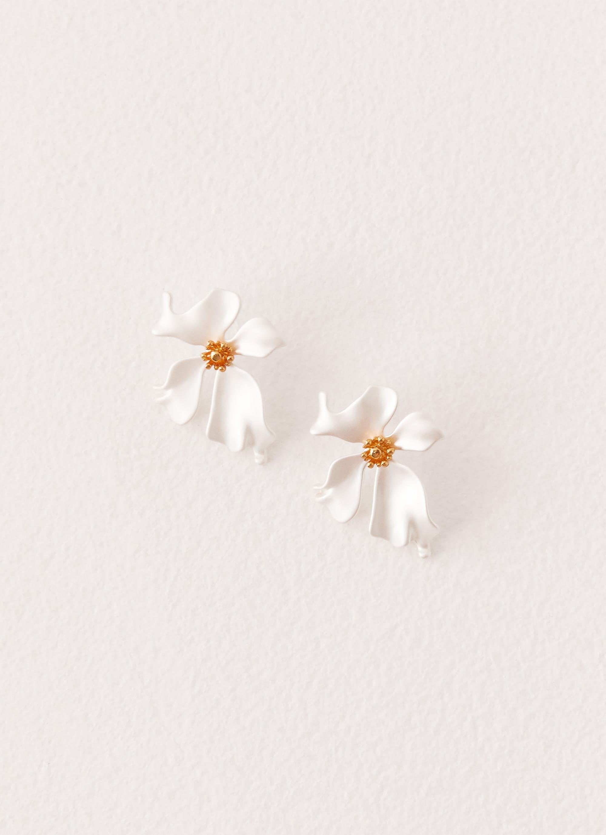 The Avery Earrings are a delicate and feminine accessory, featuring a beautiful flower shape adorned with a pearl in the center. The elegant design combines soft floral elements with the timeless elegance of pearls, making these earrings perfect for adding a touch of sophistication to any look.